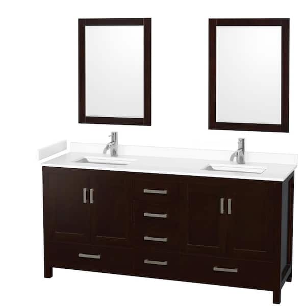 Sheffield 72 in. W x 22 in. D x 35 in. H Double Bath Vanity in Espresso with White Cultured Marble Top and 24" Mirrors