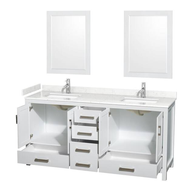 Sheffield 72 in. W x 22 in. D x 35 in. H Double Bath Vanity in White with Carrara Cultured Marble Top and 24" Mirrors