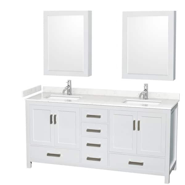 Sheffield 72 in. W x 22 in. D x 35 in. H Double Bath Vanity in White with Carrara Cultured Marble Top and MC Mirrors