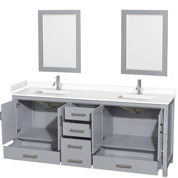 Sheffield 80 in. W x 22 in. D x 35 in. H Double Bath Vanity in Gray with White Cultured Marble Top and 24" Mirrors
