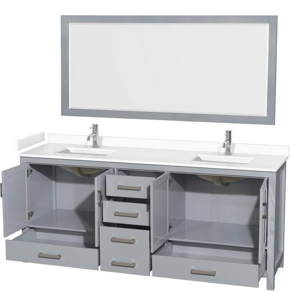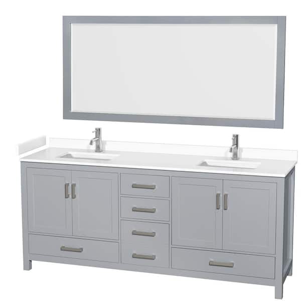 Sheffield 80 in. W x 22 in. D x 35 in. H Double Bath Vanity in Gray with White Cultured Marble Top and 70" Mirror