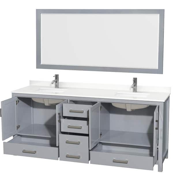Sheffield 80 in. W x 22 in. D x 35 in. H Double Bath Vanity in Gray with White Quartz Top and 70 in. Mirror