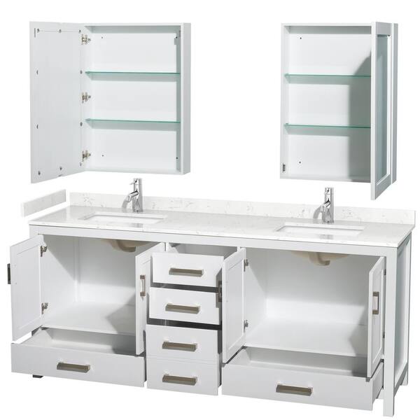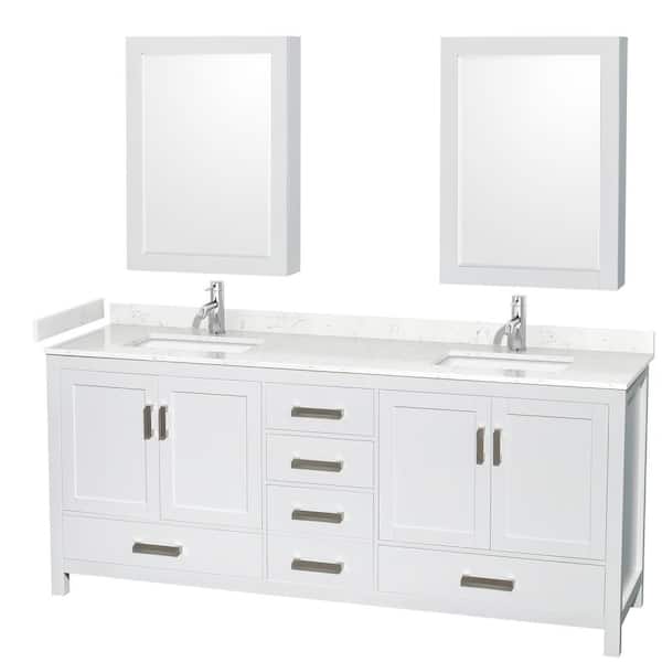 Sheffield 80 in. W x 22 in. D x 35 in. H Double Bath Vanity in White with Carrara Cultured Marble Top and MC Mirrors