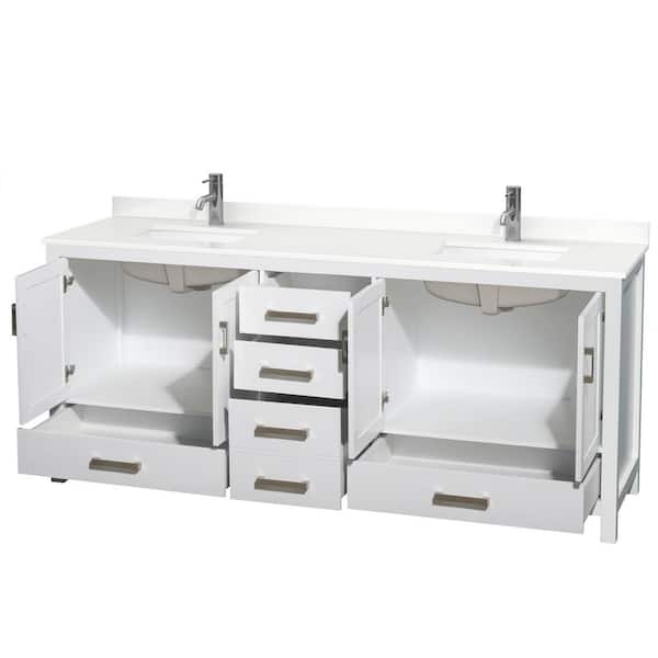 Sheffield 80 in. W. x 22 in. D x 35 in. H Double Bath Vanity in White with White Quartz Top