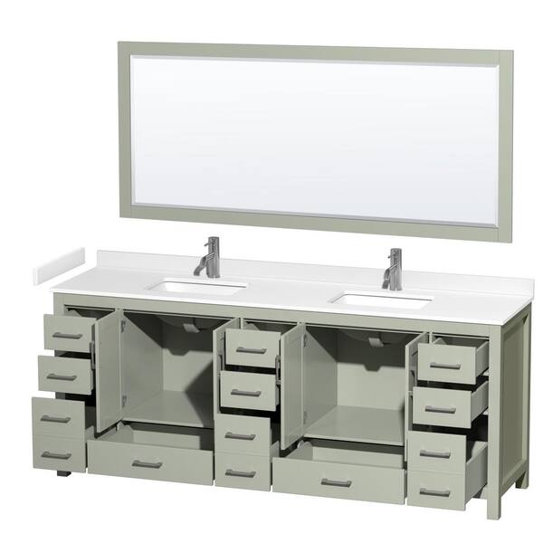 Sheffield 84 in. W x 22 in. D x 35 in. H Double Bath Vanity in Light Green with White Cultured Marble Top and 70" Mirror