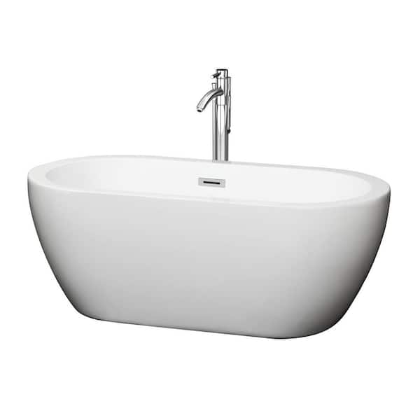 Soho 59.75 in. Acrylic Flatbottom Center Drain Soaking Tub in White with Floor Mounted Faucet in Chrome