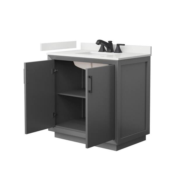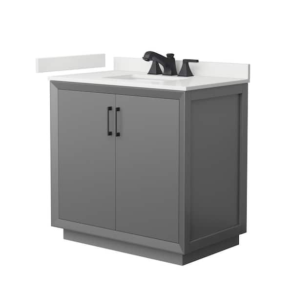 Strada 36 in. W x 22 in. D x 35 in. H Single Bath Vanity in Dark Gray with White Quartz Top