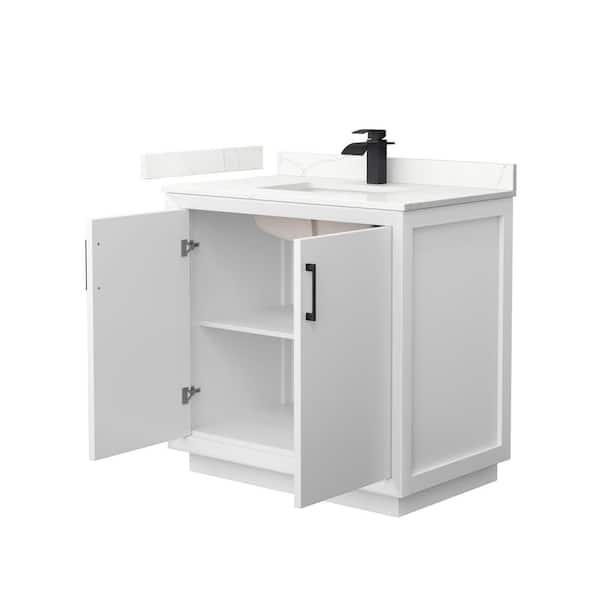 Strada 36 in. W x 22 in. D x 35 in. H Single Bath Vanity in White with Giotto Quartz Top