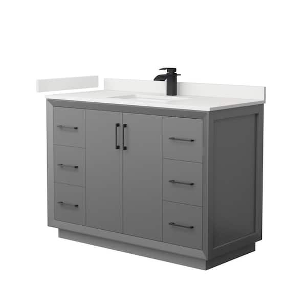 Strada 48 in. W x 22 in. D x 35 in. H Single Bath Vanity in Dark Gray with White Quartz Top