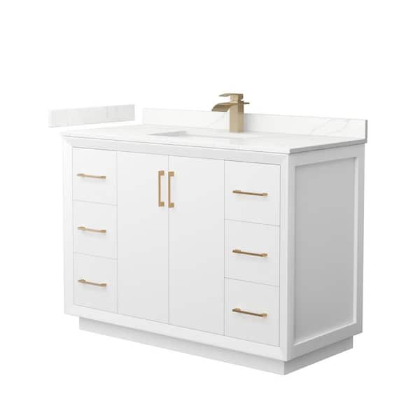 Strada 48 in. W x 22 in. D x 35 in. H Single Bath Vanity in White with Giotto Quartz Top