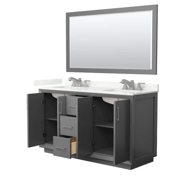 Strada 60 in. W x 22 in. D x 35 in. H Double Bath Vanity in Dark Gray with Giotto Quartz Top and 58 in. Mirror