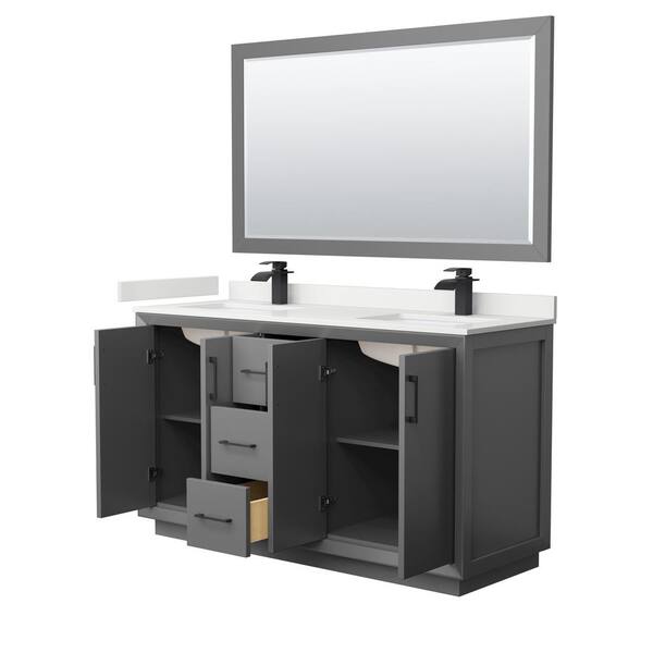 Strada 60 in. W x 22 in. D x 35 in. H Double Bath Vanity in Dark Gray with White Quartz Top and 58 in. Mirror