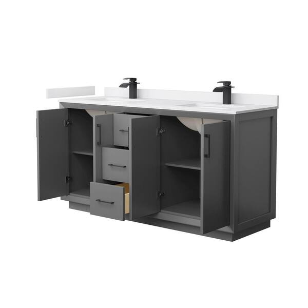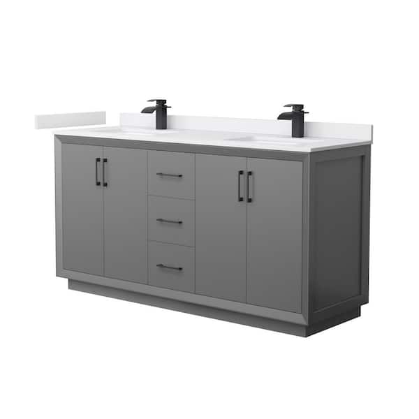 Strada 66 in. W x 22 in. D x 35 in. H Double Bath Vanity in Dark Gray with White Cultured Marble Top