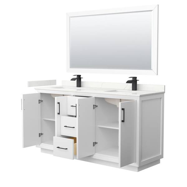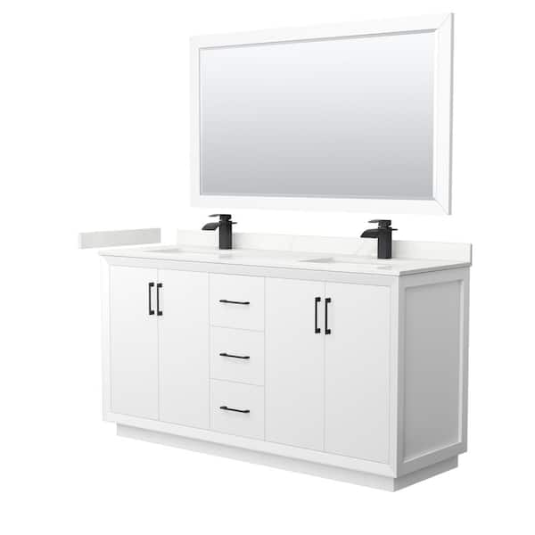 Strada 66 in. W x 22 in. D x 35 in. H Double Bath Vanity in White with Giotto Quartz Top and 58 in. Mirror