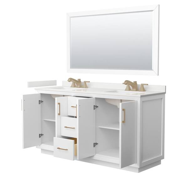 Strada 66 in. W x 22 in. D x 35 in. H Double Bath Vanity in White with White Quartz Top and 58 in. Mirror