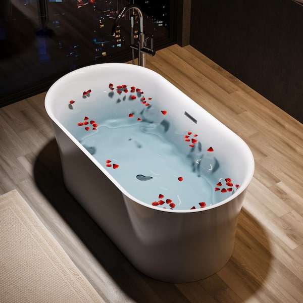 67 in. x 31.5 in. Freestanding Acrylic Soaking Bathtub with Center Drain in Glossy White