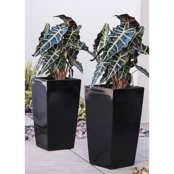 22 in. Tall Black Plastic Nested Self Watering Indoor/Outdoor Square Planter Pot (Set of 2)