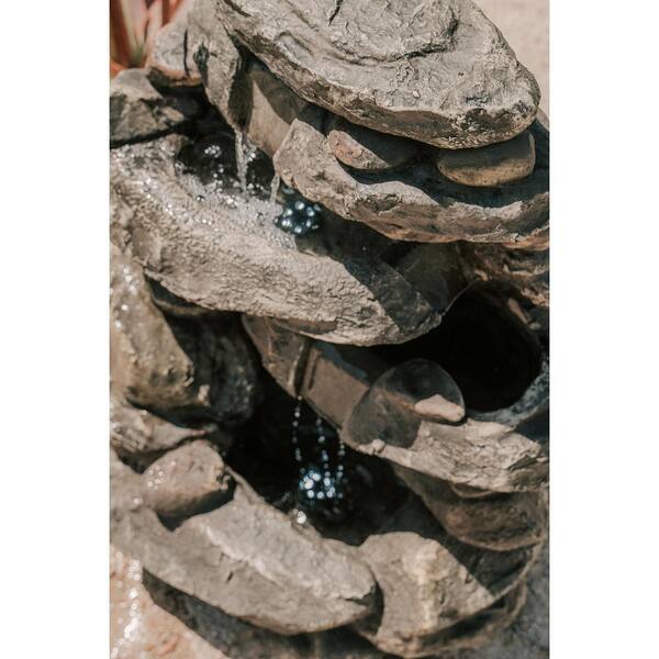 26.4 in. H Polystone/Stone Powder Classic Stacked Rock Waterfall Fountain, LED Lights and Pump, Multilevel Water Feature