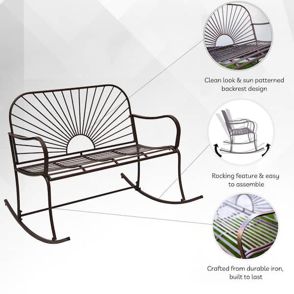 38.2 in. W Seat for 2-Brown Metal Sun-Patterned Indoor/Outdoor Rocking Patio Glider