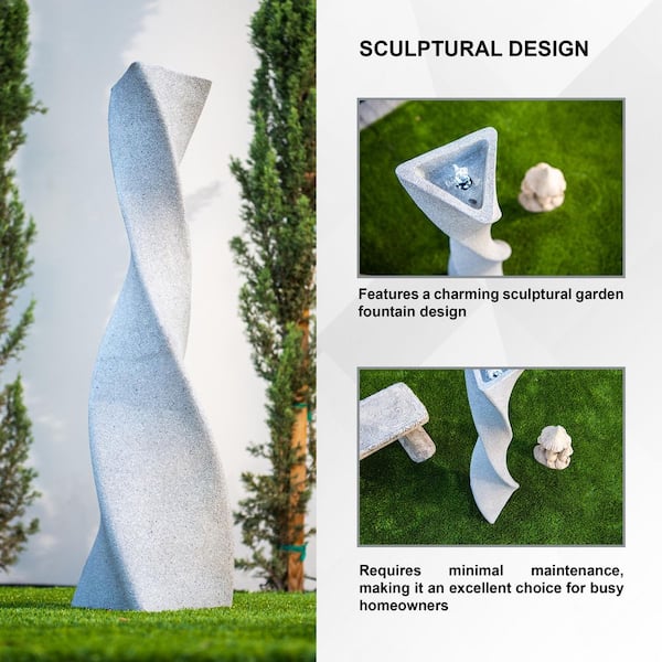 39 in. H Freestanding Resin Fiberglass Sculptural Waterfall Twisted Pilar Outdoor Garden Fountain w/LED Light, White