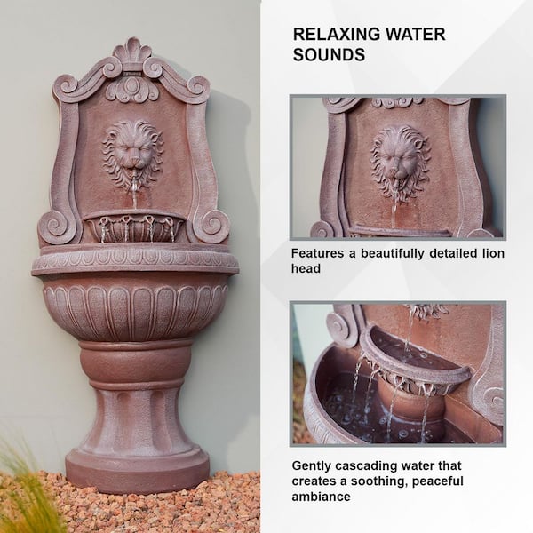 52.4 in. Sandstone Lion Head Floor Fountain, 2-Tier Outdoor Water Feature, Durable Resin Construction
