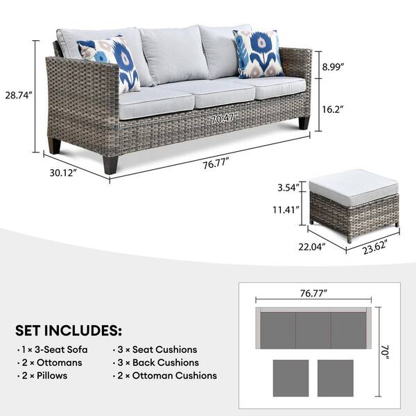 Andes Gray Wicker Outdoor Couch Patio Sofa with Gray Cushions and Ottoman