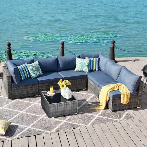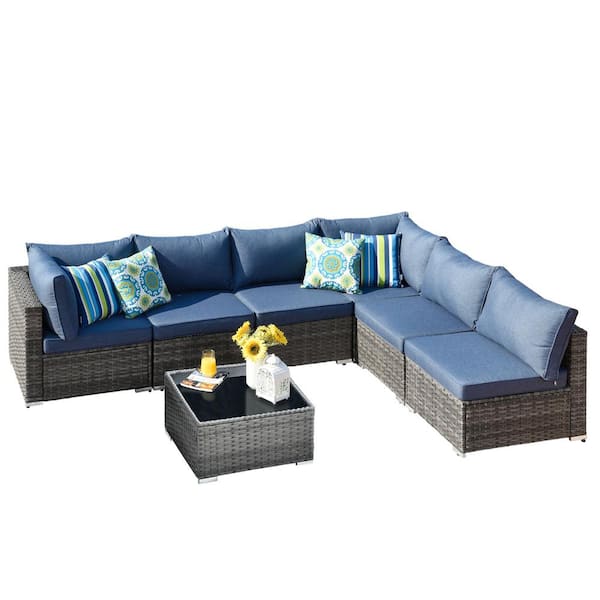 Arctic 7-Piece Wicker Outdoor Sectional Set with Blue Cushions