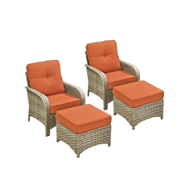Bluebell 4-Pieces Wicker Patio Conversation Seating Sofa Set with Orange Red Cushions