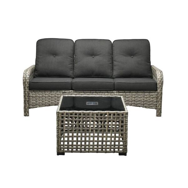 Canopy Reed Wicker Outdoor Couch Patio Sofa with Black Cushions and Coffee Table