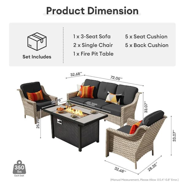 • Includes a 3-person sofa, 2 single chairs and 1 firepit