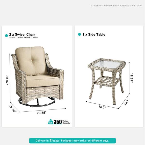 Evolve 3-Piece Wicker Outdoor Rocking Chair Set with Beige Cushions