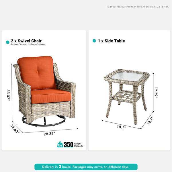 Evolve 3-Piece Wicker Outdoor Rocking Chair Set with Orange Red Cushions
