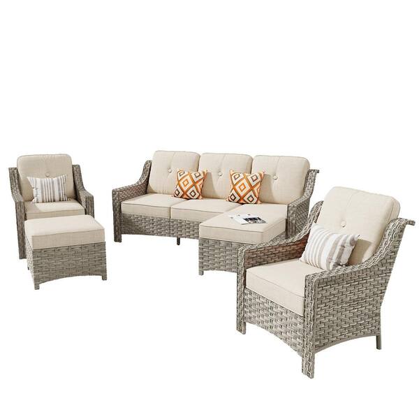 Freddie 5-Piece Wicker Outdoor Patio Conversation Seating Sofa Set with Beige Cushions