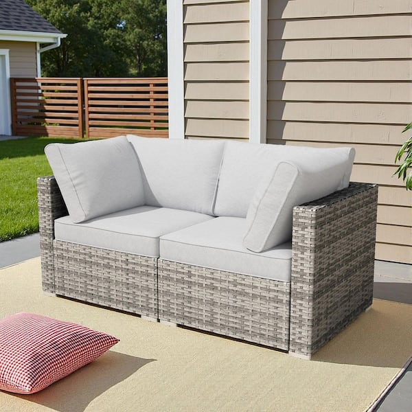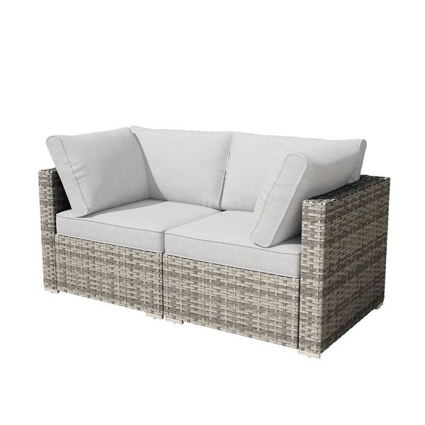 RusticRetreat 2 Pieces Wicker Patio Conversation Seating Sofa Set with Grey Cushions