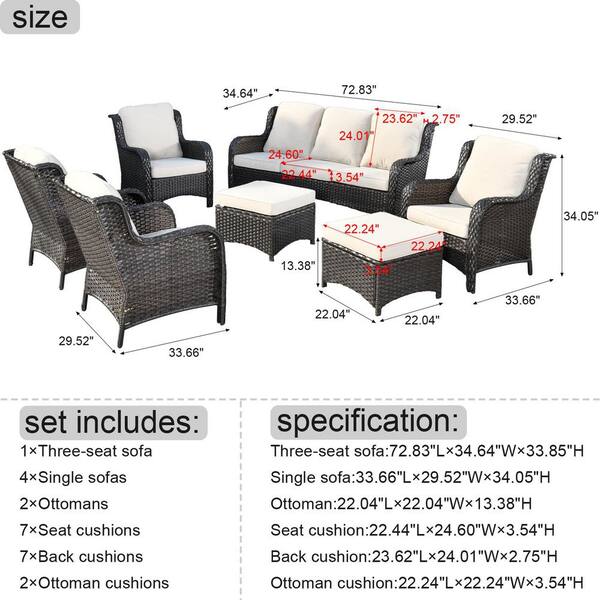 Santorini Brown 7-Piece Wicker Outdoor Patio Conversation Seating Sofa Set with Beige Cushions