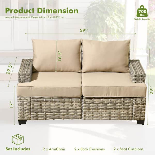 Terra Wicker Outdoor Couch Patio Sofa with Beige Cushions