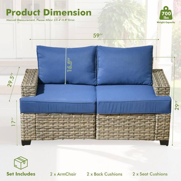 Terra Wicker Outdoor Couch Patio Sofa with Navy Blue Cushions