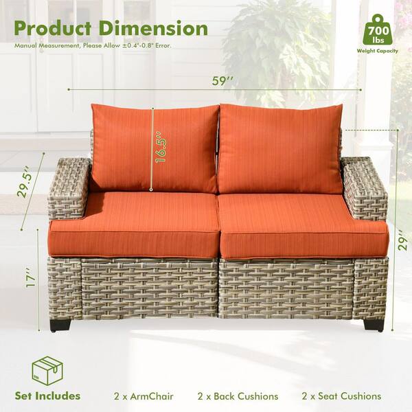 Terra Wicker Outdoor Couch Patio Sofa with Orange Red Cushions