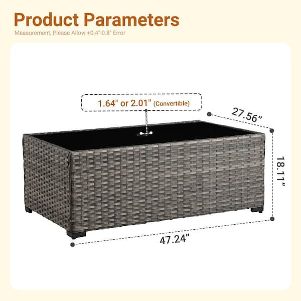 Thintime Rectangular Gray Wicker Outdoor Patio with Umbrella Hole Table