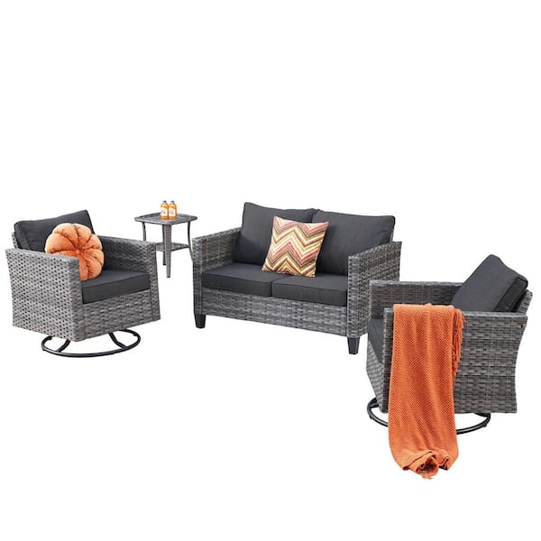 Yolanda Gray 4-Piece Wicker Outdoor Rocking Chair Set with Black Cushions