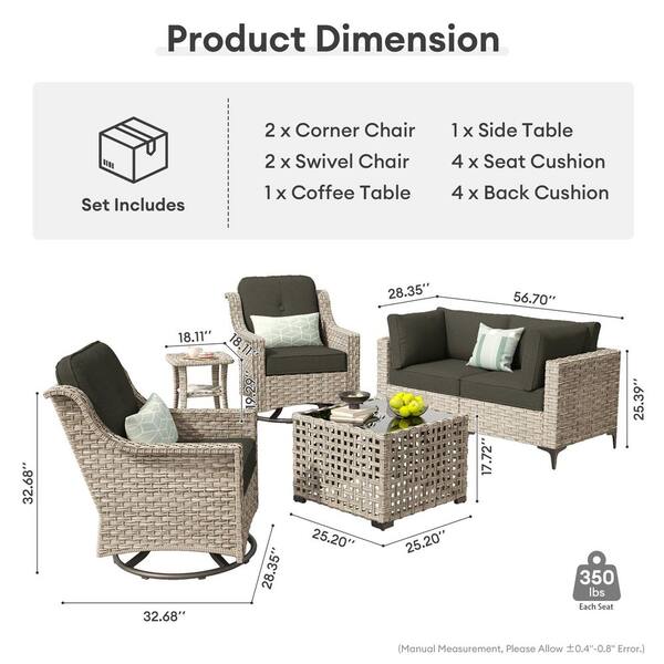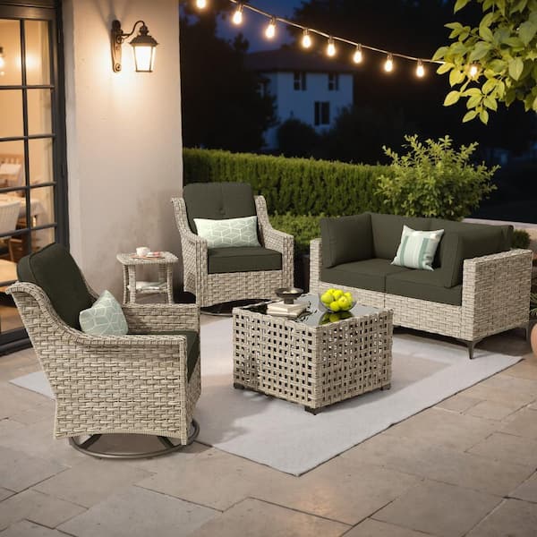 Zephyr 6 Pieces Wicker Outdoor Rocking Chair Set with Black Cushions