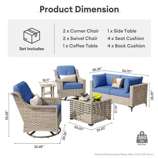 Zephyr 6 Pieces Wicker Outdoor Rocking Chair Set with Diamond Blue Cushions