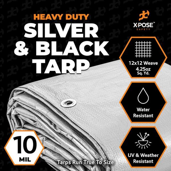 10 mil 20 ft. W x 40 ft. L Silver and Black Heavy Duty Tarp