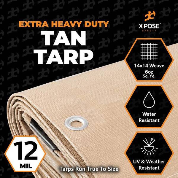 Heavy-Duty Tan Poly Tarp 20 ft. x 40 ft. Multi-Purpose Protective Cover Durable Extra Thick 12 Mil Polyethylene