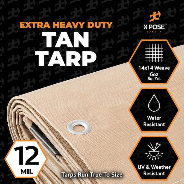 Heavy-Duty Tan Polyethylene Plastic Tarp 40 ft. x 60 ft. Multi-Purpose Cover Durable Extra Thick 12 Mil with Grommets