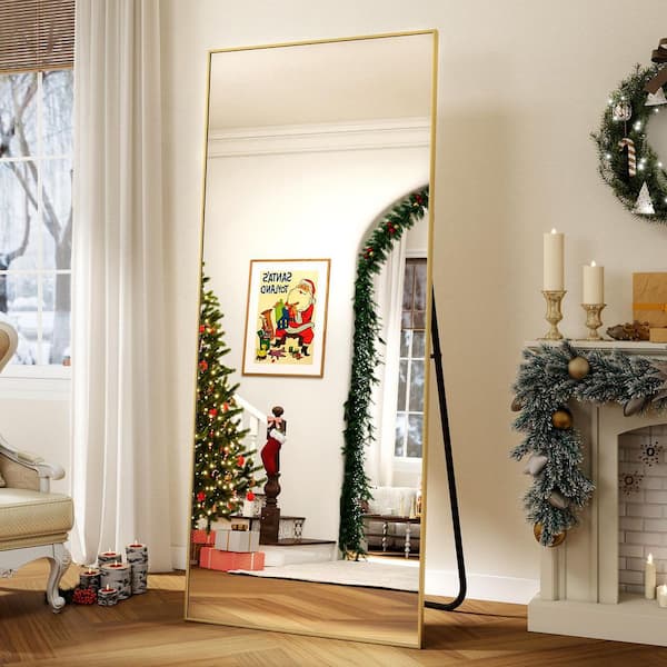 18 in. W x 58 in. H Rectangular Gold Modern Aluminum Alloy Framed Full Length Mirror Wall Mirror