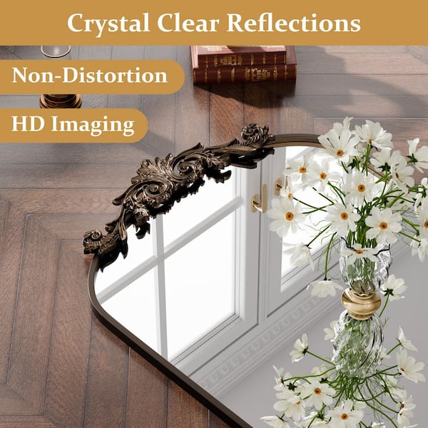 21 in. W x 64 in. H Arched Bronze Metal Framed with Carved Decoration Full Length Mirror