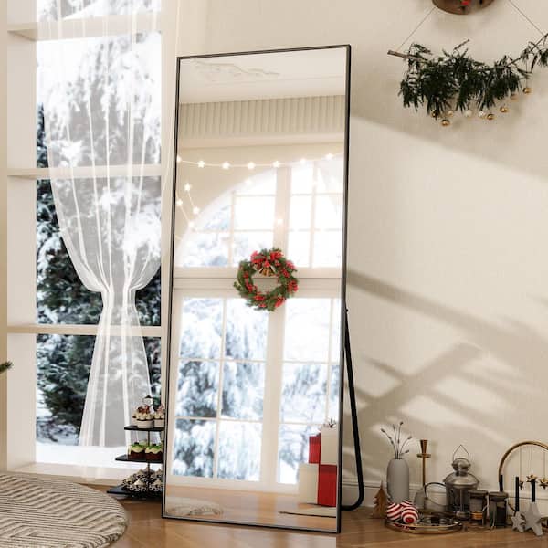 21 in. W x 64 in. H Rectangular Black Aluminum Alloy Framed Full Length Mirror Standing Floor Mirror