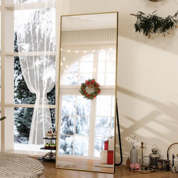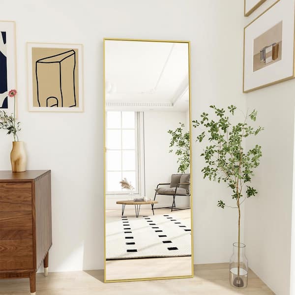 21 in. W x 64 in. H Rectangular Gold Aluminum Alloy Framed Full Length Mirror Standing Floor Mirror