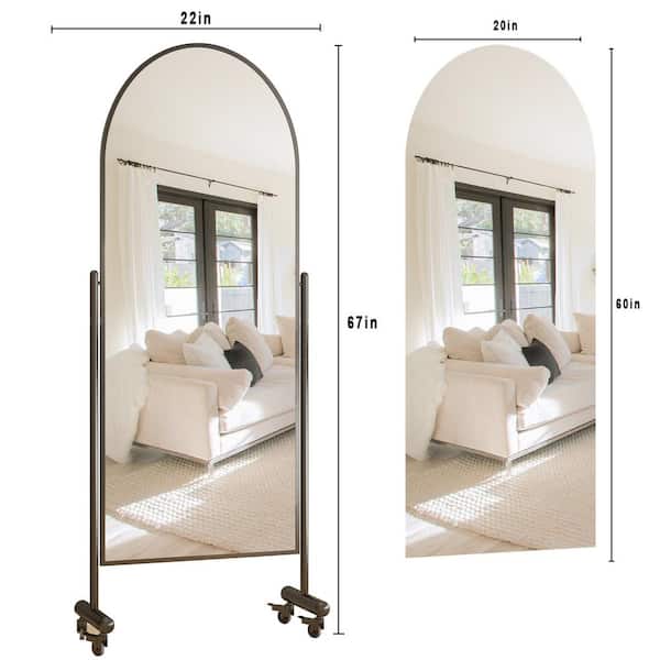 22 in. W x 67 in. H Arched Black Aluminum Alloy Framed Dance Mirror Floor Mirror